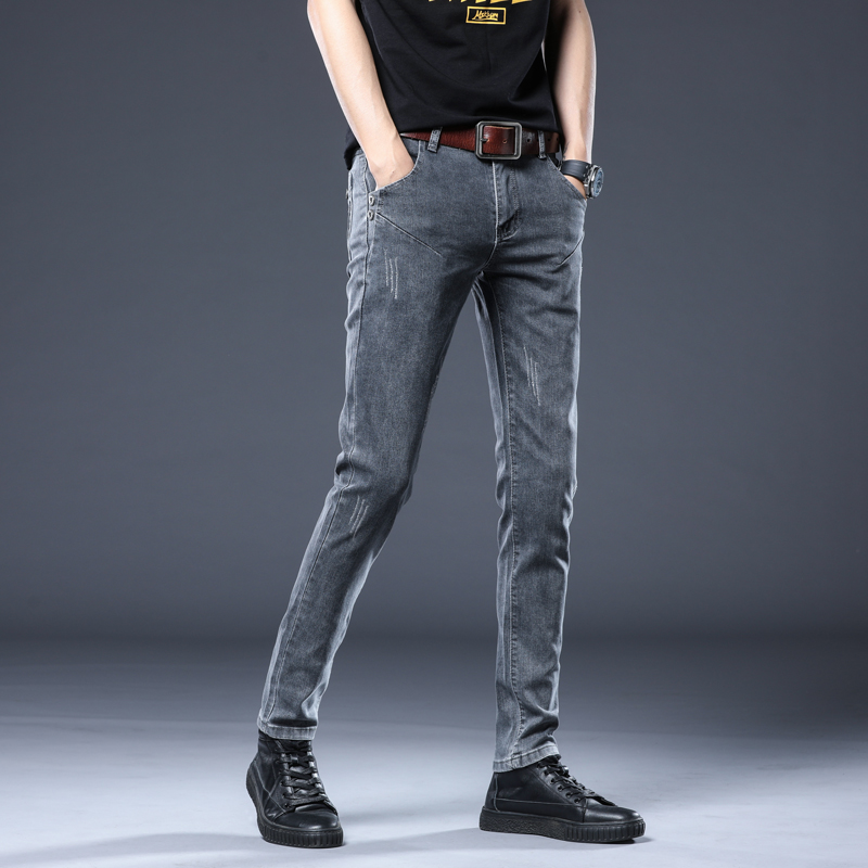 Spring and autumn jeans men's tide 2023 new elastic men's casual trousers to wear small pants summer thin