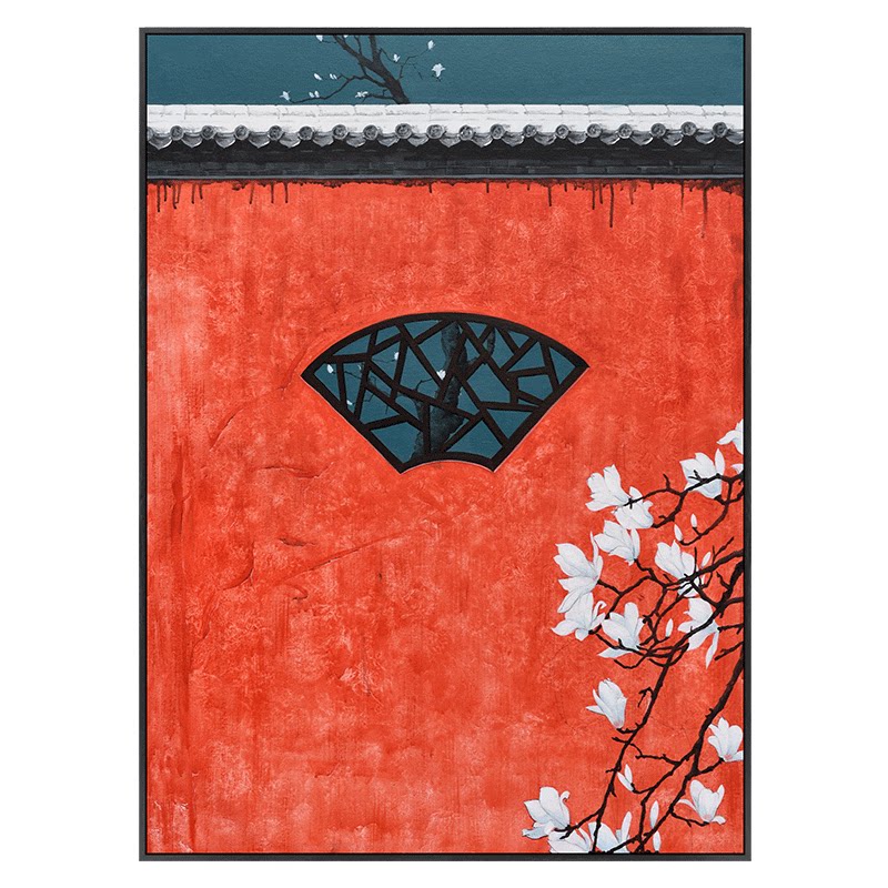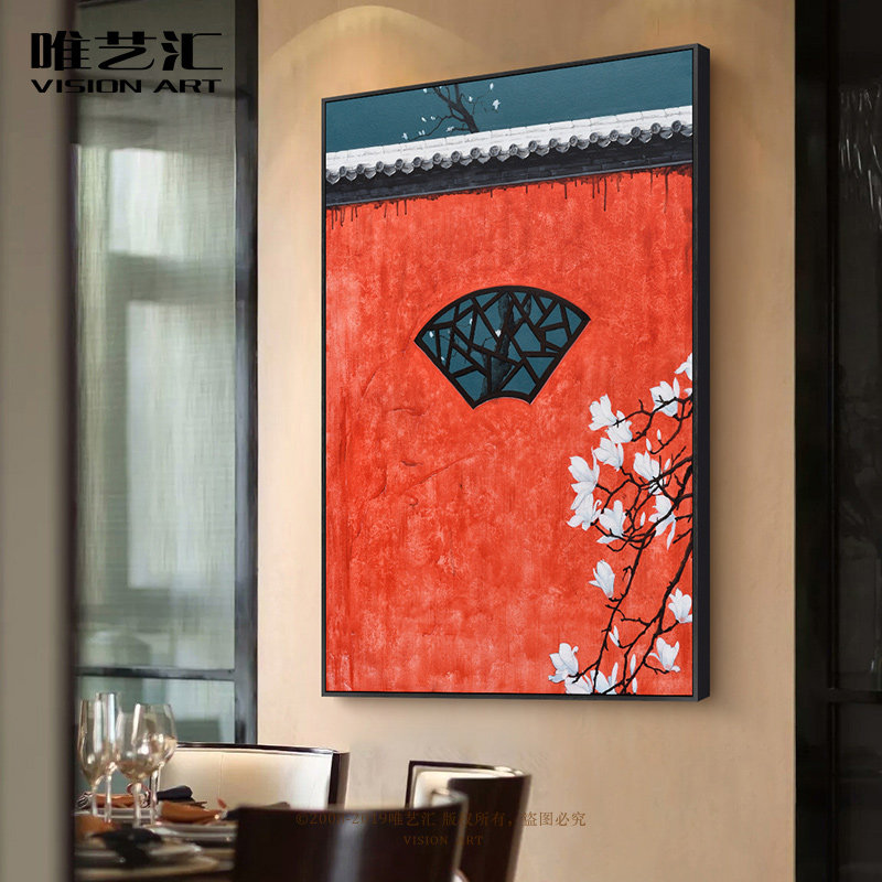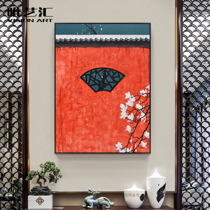 Meritocracy Modern New Chinese Style Imperial Palace Red Wall Decoration Painting Sofa Background Wall Xuan Guan Vertical Version Hand-painted Oil Painting Finished Product