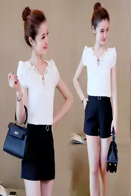 Fashion set 2021 summer New temperament Joker short sleeve chiffon shirt female hipster foreign school look thin two-piece set