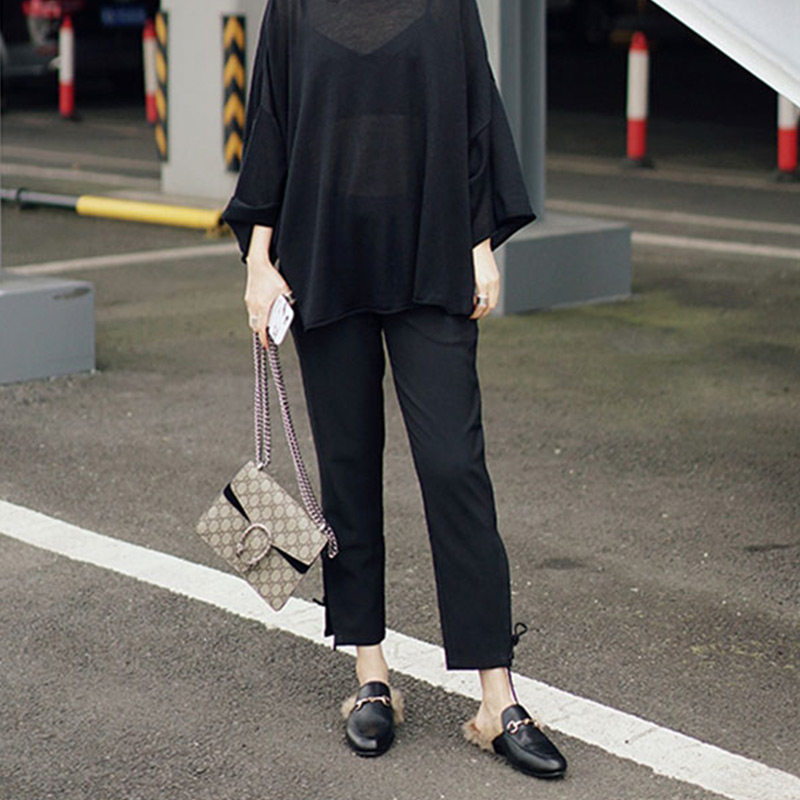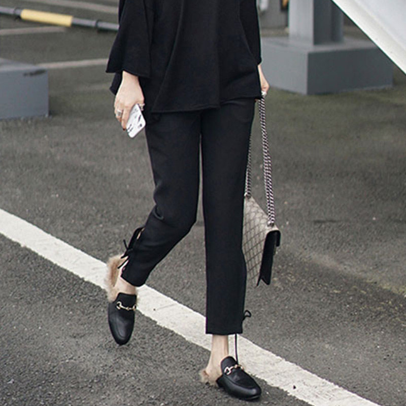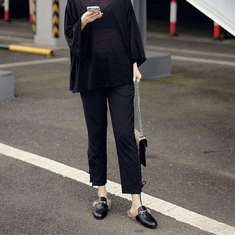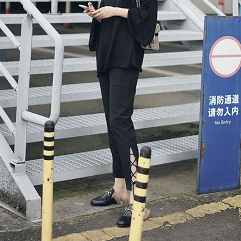 Summer women's little feet dear casual pants nine points with the same style slit straps hot Hong Kong flavor