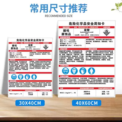 Hazardous chemicals safety awareness card Hazardous chemicals material hazard notification card Hydrochloric acid Sulfuric acid nitric acid liquid alkali liquid nitrogen Paint chemicals acetylene identification card Warning card Customized customized