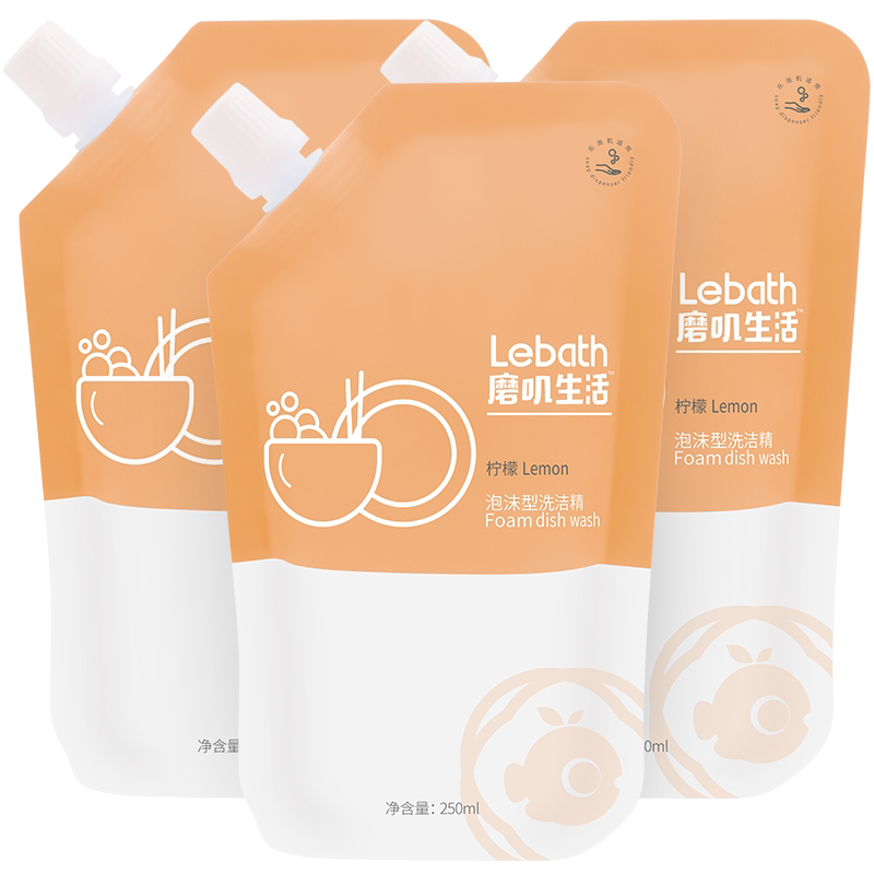 Le bubble lemon foam detergent de-oiling does not hurt hands Vegetable and fruit tableware cleaning 250ml*3 combination pack