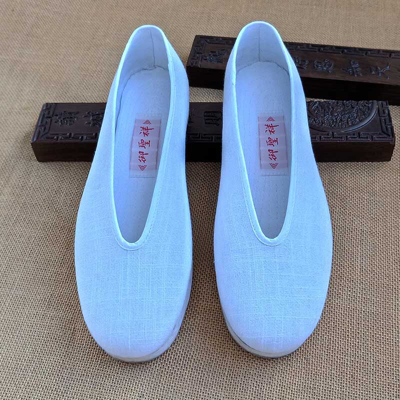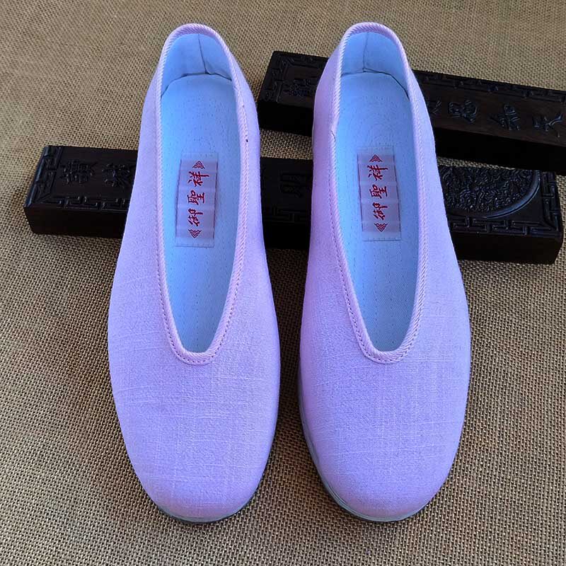 New old Beijing cloth shoes women's Chinese style retro soft bottom yuan round mouth handmade layer bottom powder green small white shoes mother