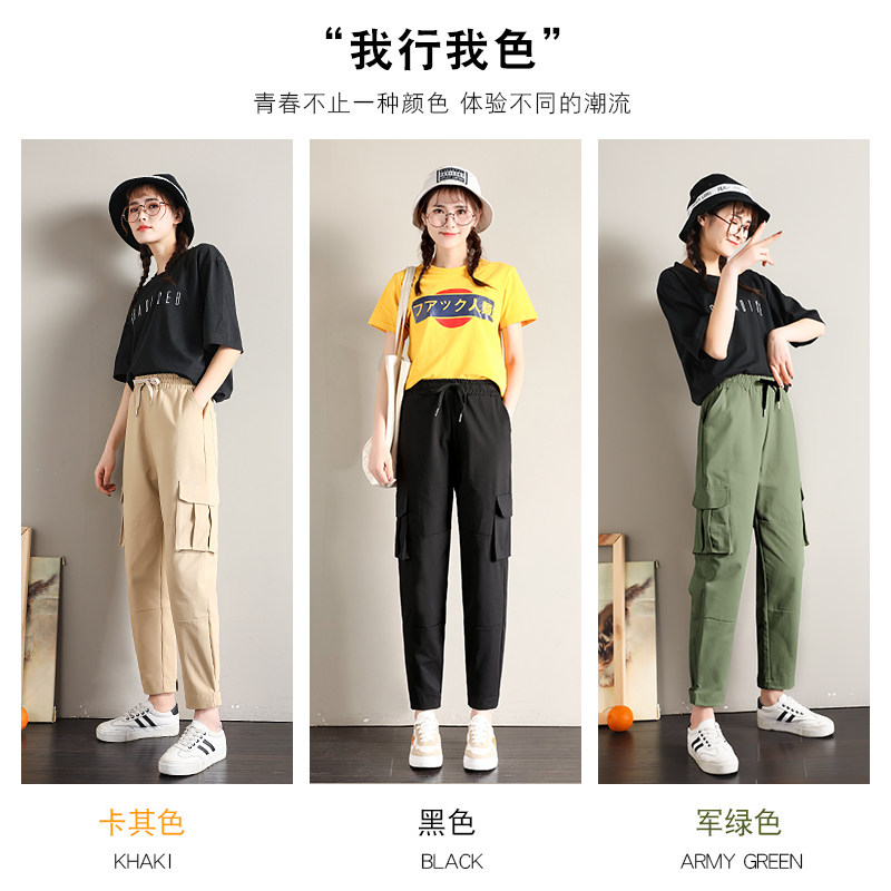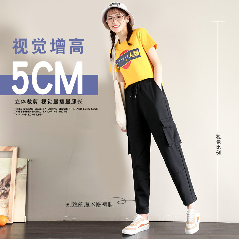 Overalls women's straight tube is thin and small tall waist spring and autumn 2022 new pants black Velcro casual pants