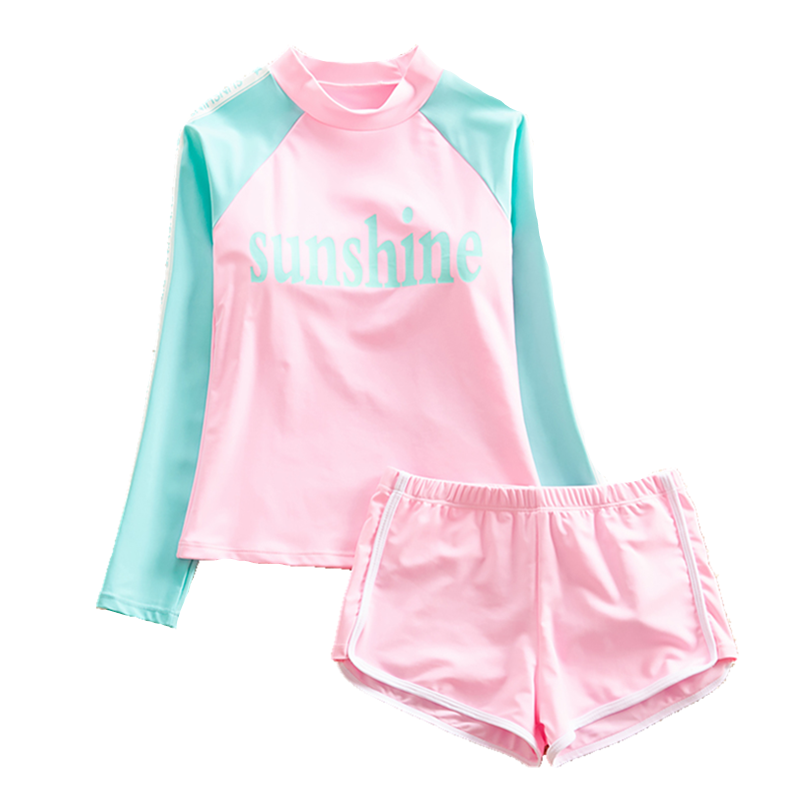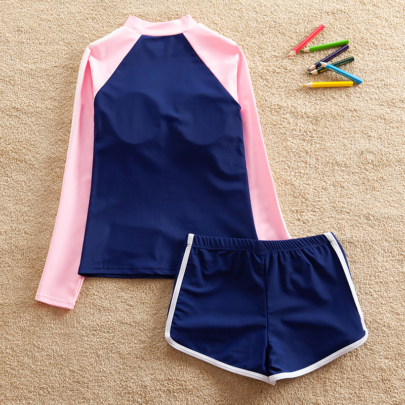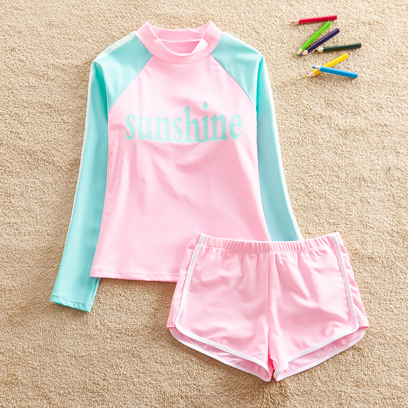 Girls Two-style swimwear Long sleeves CUHK Tong Swimming Clothing 10 Students Four-corner pants 12 Children swimsuit 13 Girls 15 years old