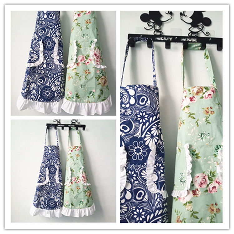 Apron Home Kitchen Pure Cotton Woman Fashion Fields Garden Wind Crummy Flowers Hanging neck lace Korean version cute princess apron customised