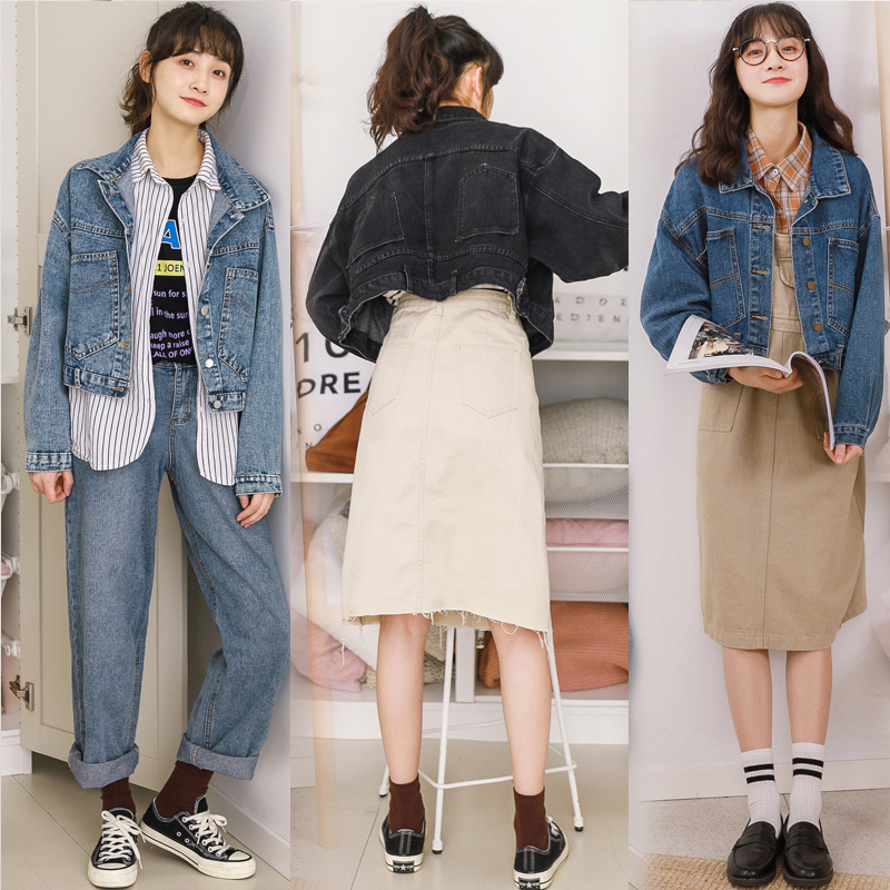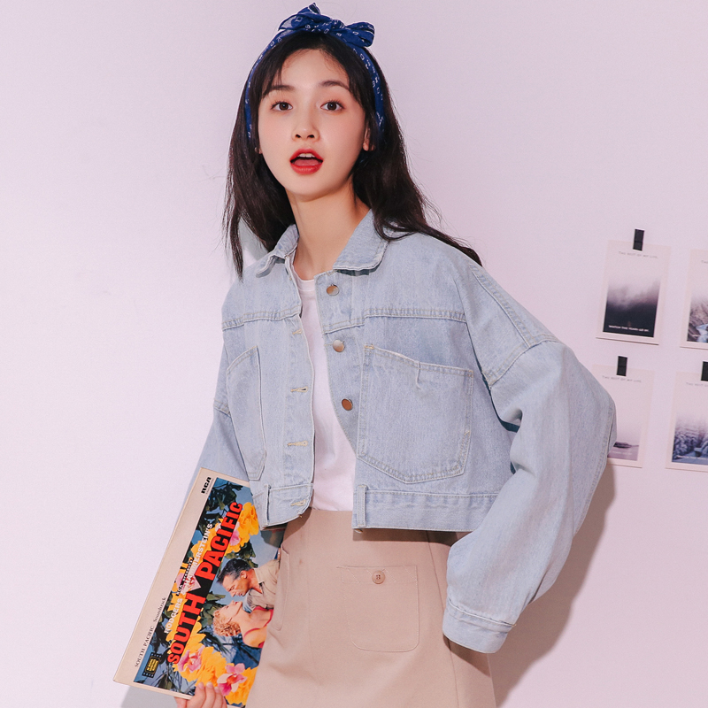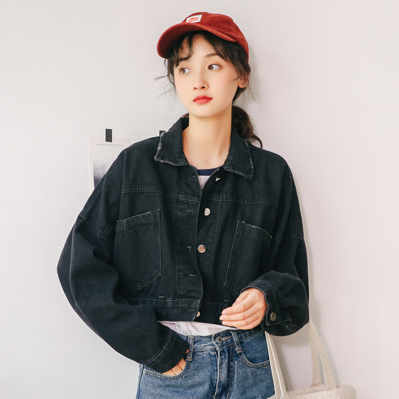 Short denim jacket women's spring and autumn 2021 new loose Korean version of the student wild thin high-waisted black jacket