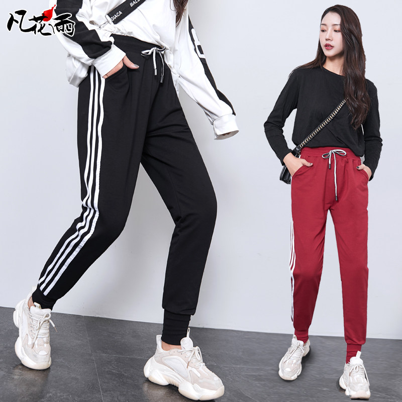 Spring and autumn section Korean version High waist bunches pants small feet Harun pants Roof pants loose Lean Pure Cotton Casual Sports Pants Women