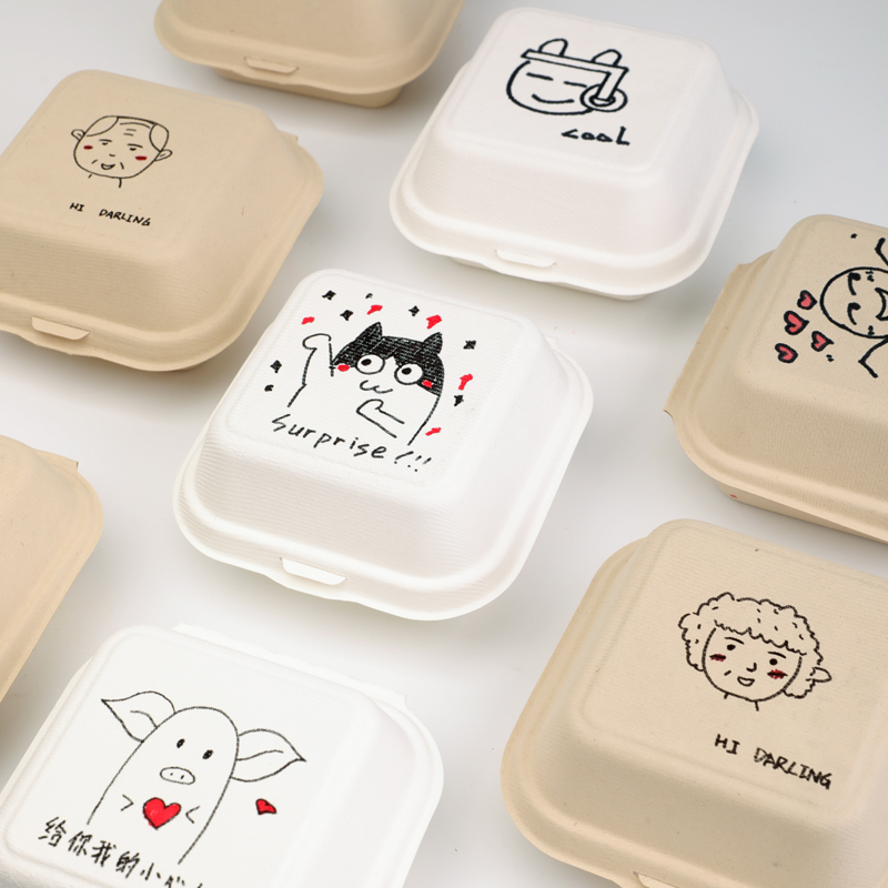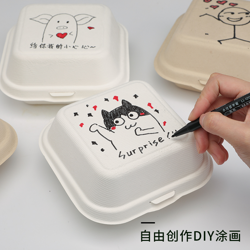 ins net red loving lunch cake box packaging creative hand painted burger box pulp meal kit