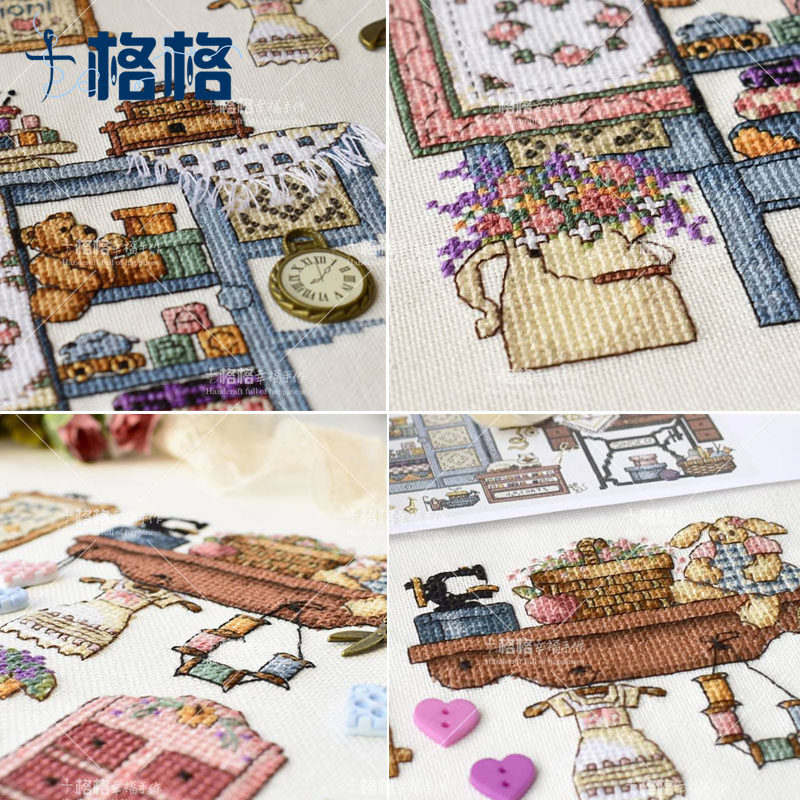 French DMC Cross Stitch Kit dim Sewing Corner Sewing Cottage Story with Vintage metal themed accessories