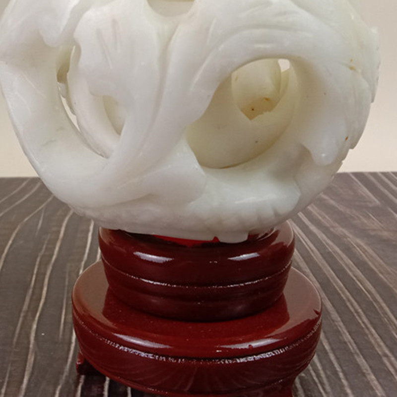 Natural jade white jade cover ball turning center ball concentric ghost workball hollowed-out relief through carved and carved round carved dragon crested with large swing piece