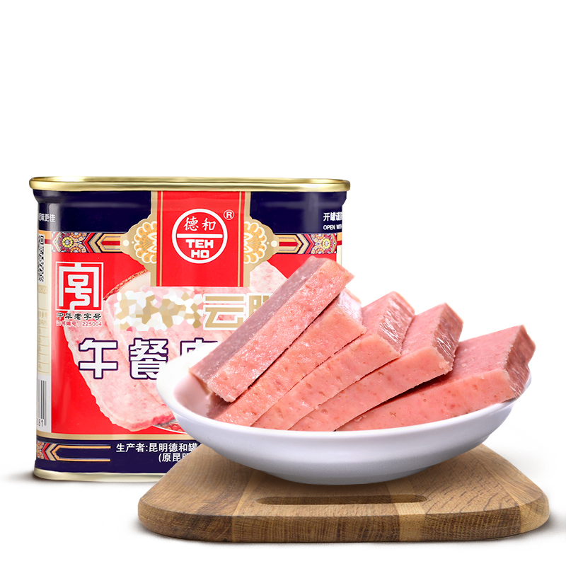 Yunnan specialty Dehe classic Xuanwei ham luncheon meat canned 340g outdoor instant food ready-to-eat China