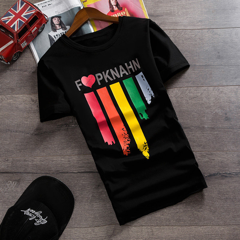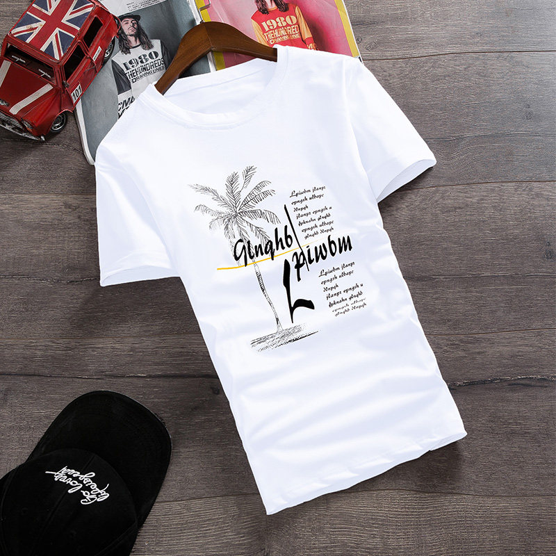 Summer white printed short sleeve T-shirt for men's Han edition Teen Half Sleeve T-shirt Tide Men's Hooded Jersey
