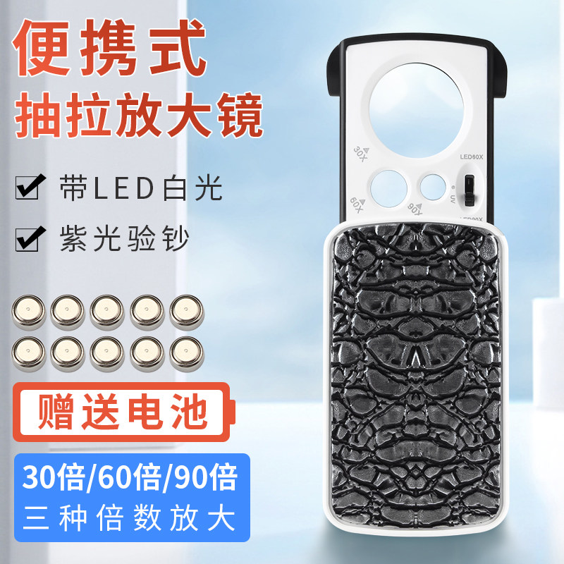 30-60 times LED light source magnifier Handheld high definition miniature mini mini portable jewelry diamond appraisal
