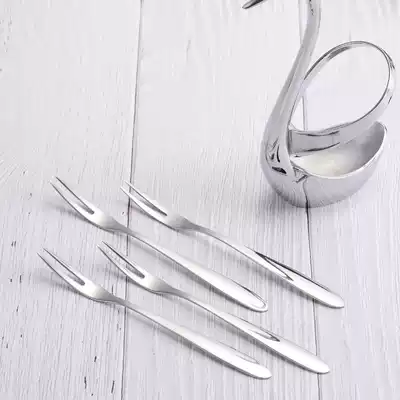 Stainless steel two-tooth mooncake fork Korean creative light handle fruit sticker dessert cake small fork fruit fork