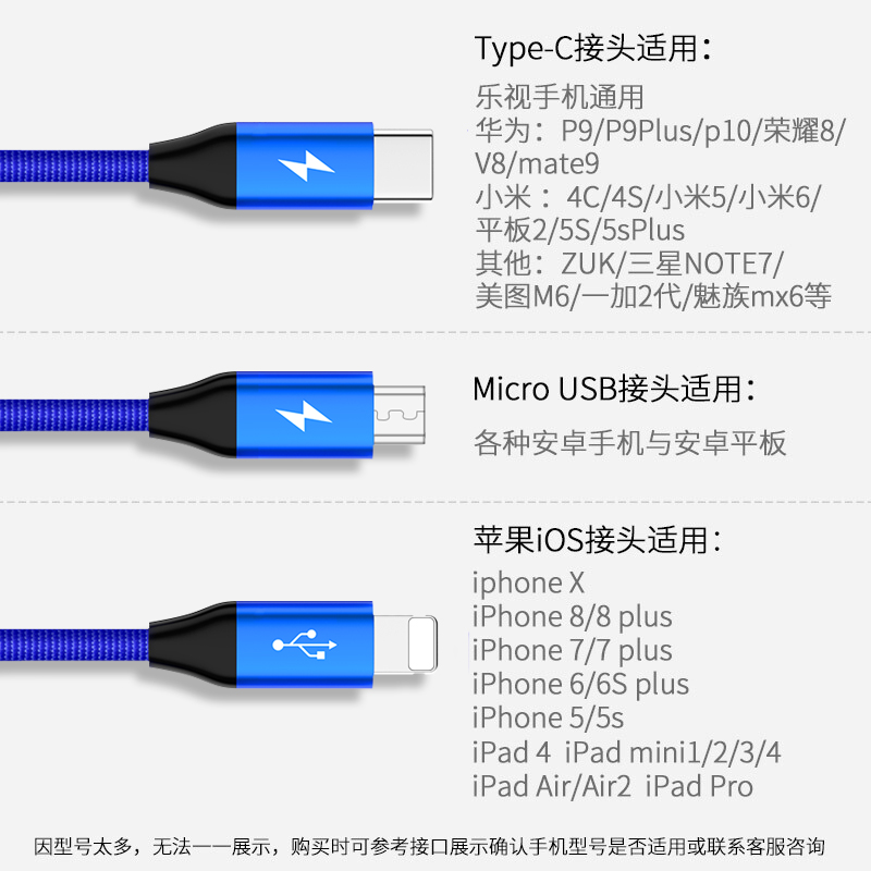 Three-in-one data line three-in-one quick-charging line Apple data line 1M Android data line 1M Type-c data line 1M