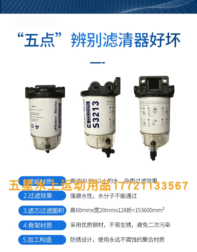 Yacht speedboat Suzuki Mercury Yamaha Yum outboard wall-mounted air conditioner S3213 oil-water separator filter element assembly