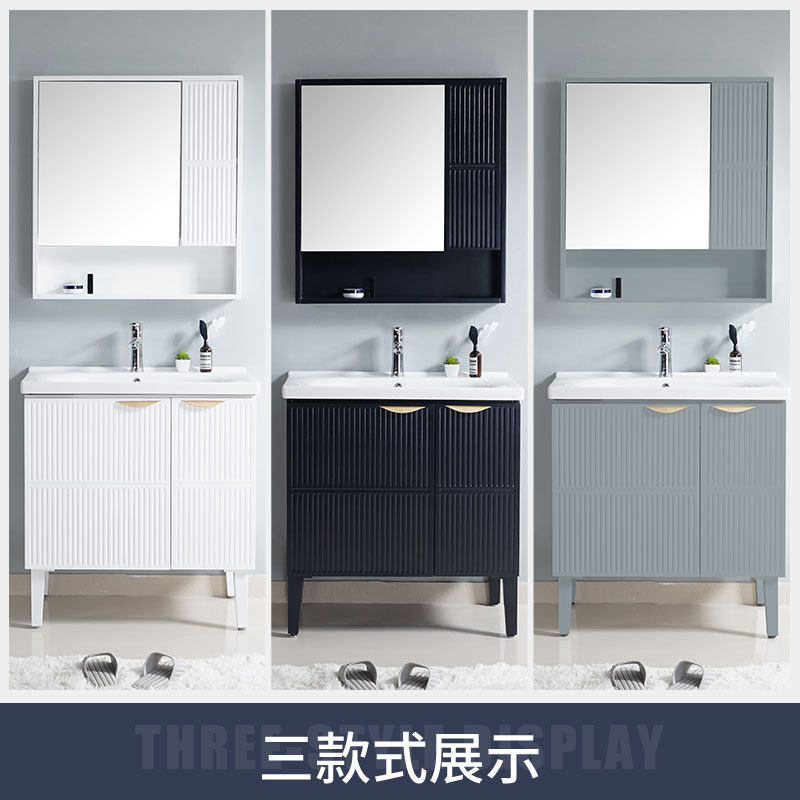 Light luxury style bathroom cabinet combination high-end Nordic gray solid wood washstand floor-standing intelligent minimalist washbasin cabinet