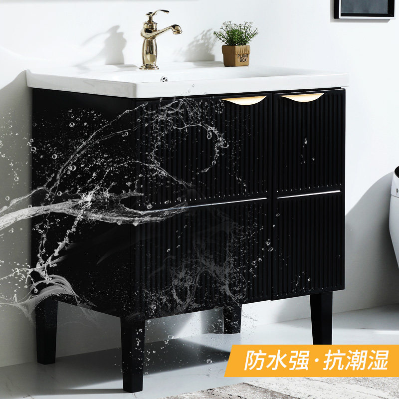 (8009 black) 90cm-mirror cabinet main cabinet integrated basin