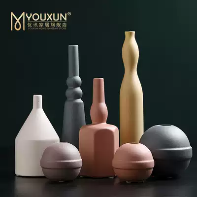 Morandi ceramic vase decoration Living room flower arrangement Nordic style flower device small caliber desktop dried flower decoration set