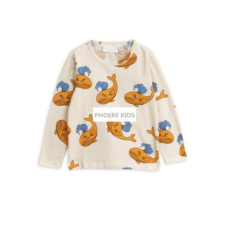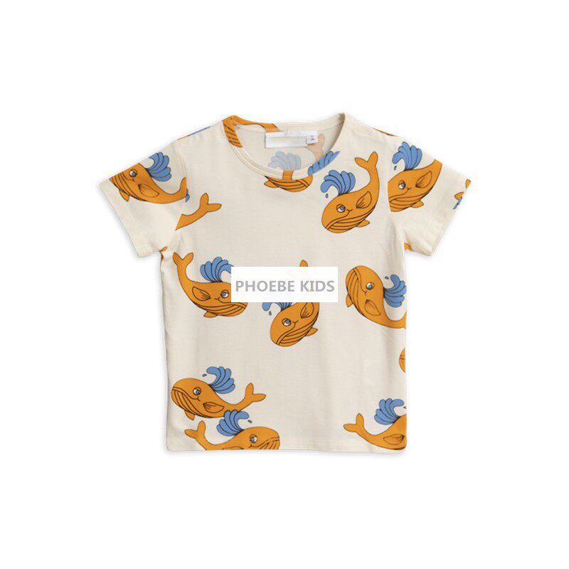 Swedish mini 19ss baby spring and summer full print whale cotton vest T-shirt trousers children's dress jumpsuit