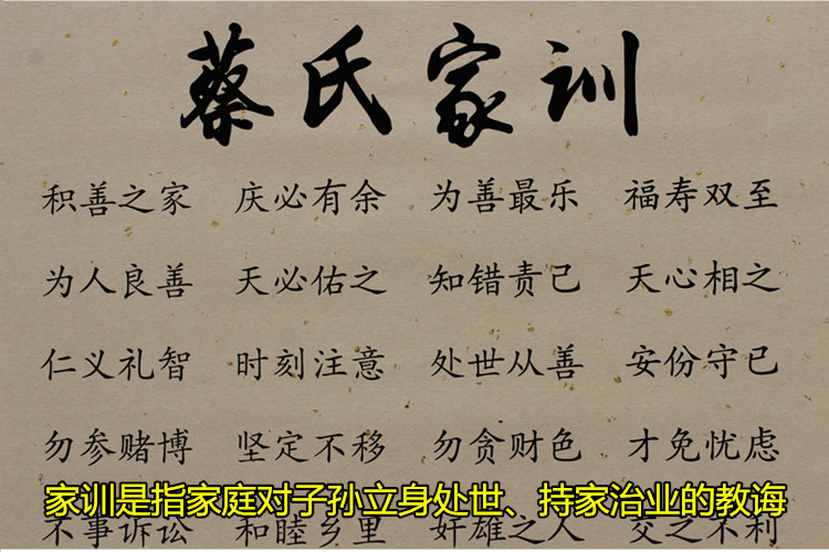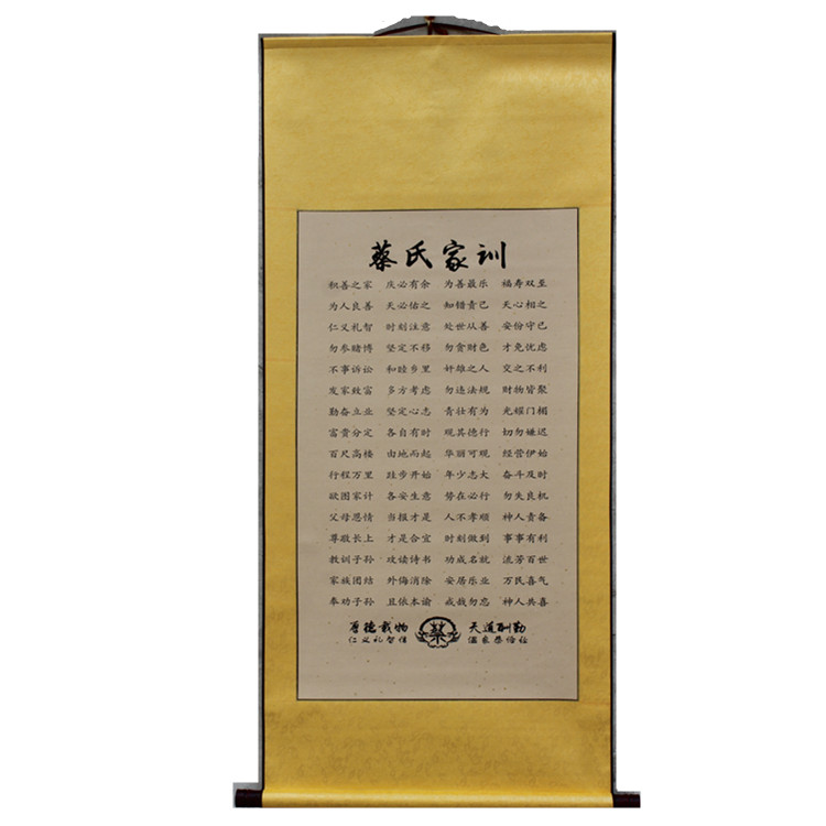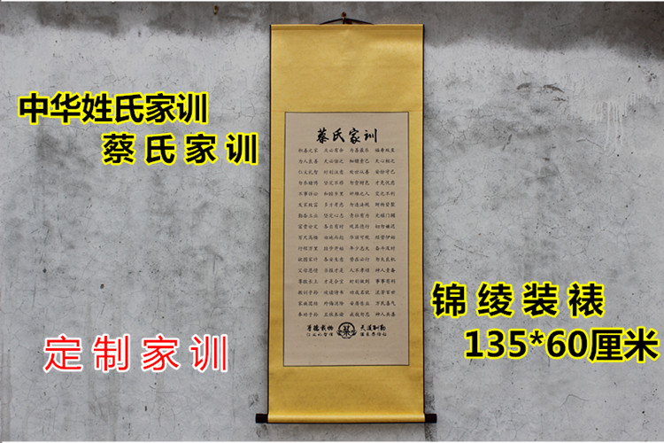 Home Gauge Custom of Cai's family motto Family motto Home Training and painting Silk scroll Home Wind education scroll Hanging Paintings