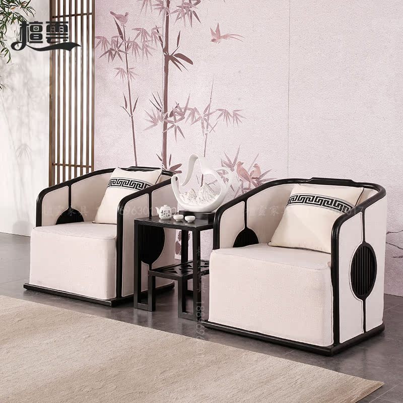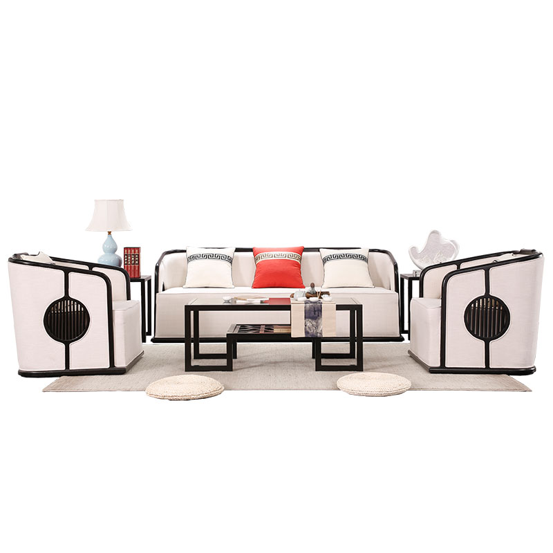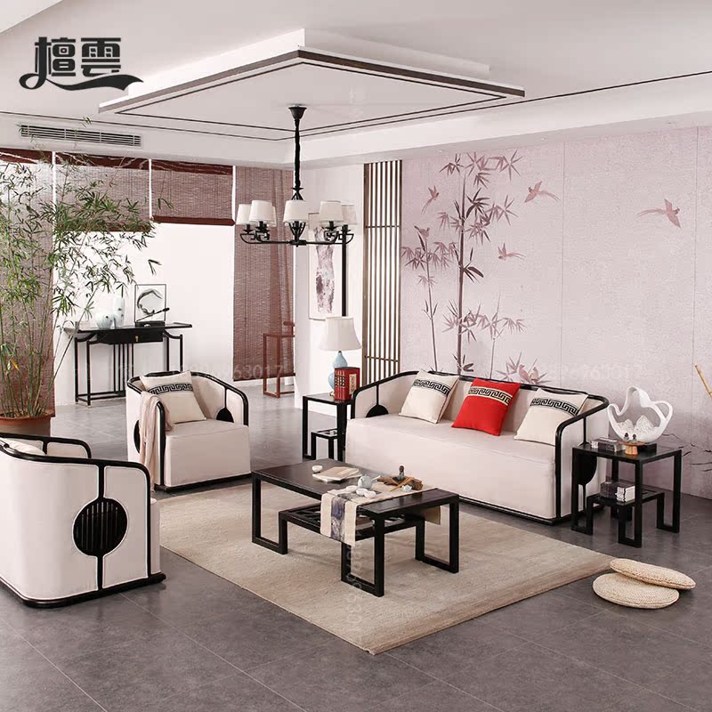 New Chinese-style sofa modern light luxury solid wood sofa combination large-scale living room Zen fabric sofa villa furniture