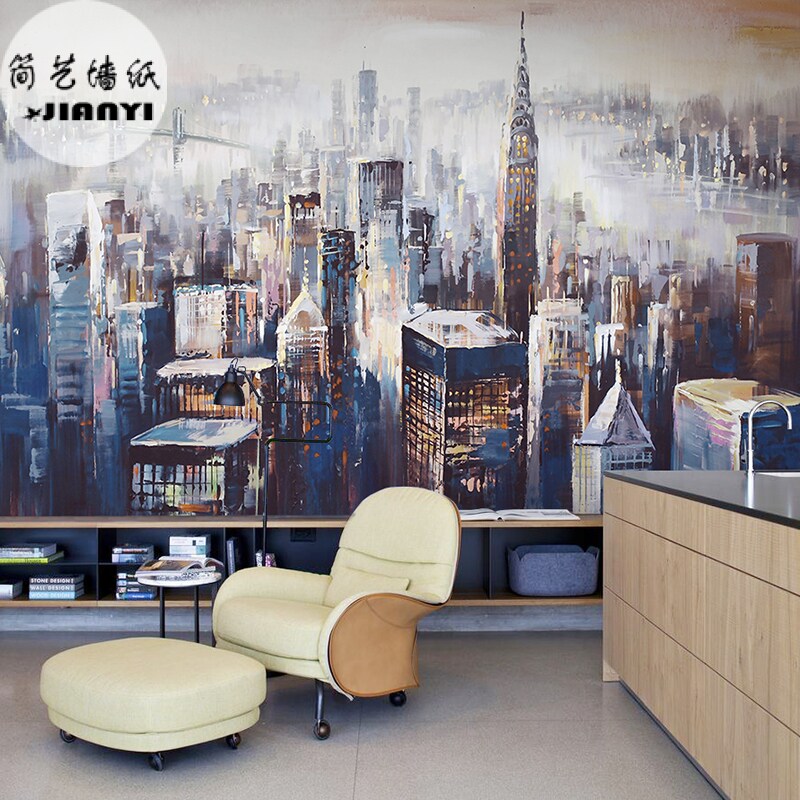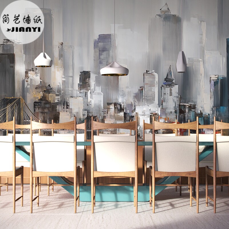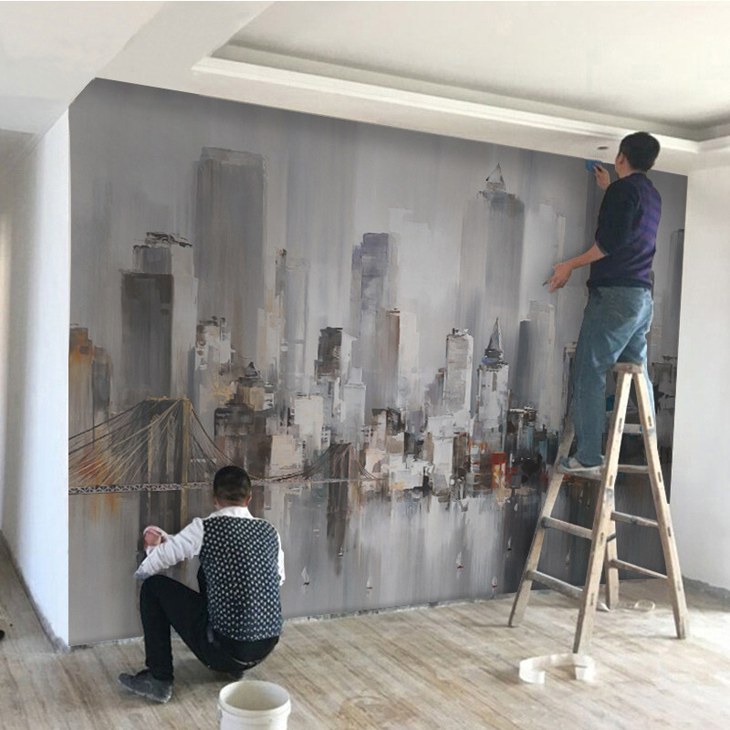 Custom vintage abstract 3D bamboo wood fiberboard Bedroom living room study dining room City high light painting landscape wainscoting