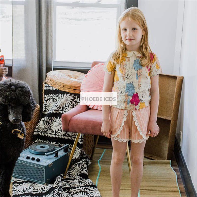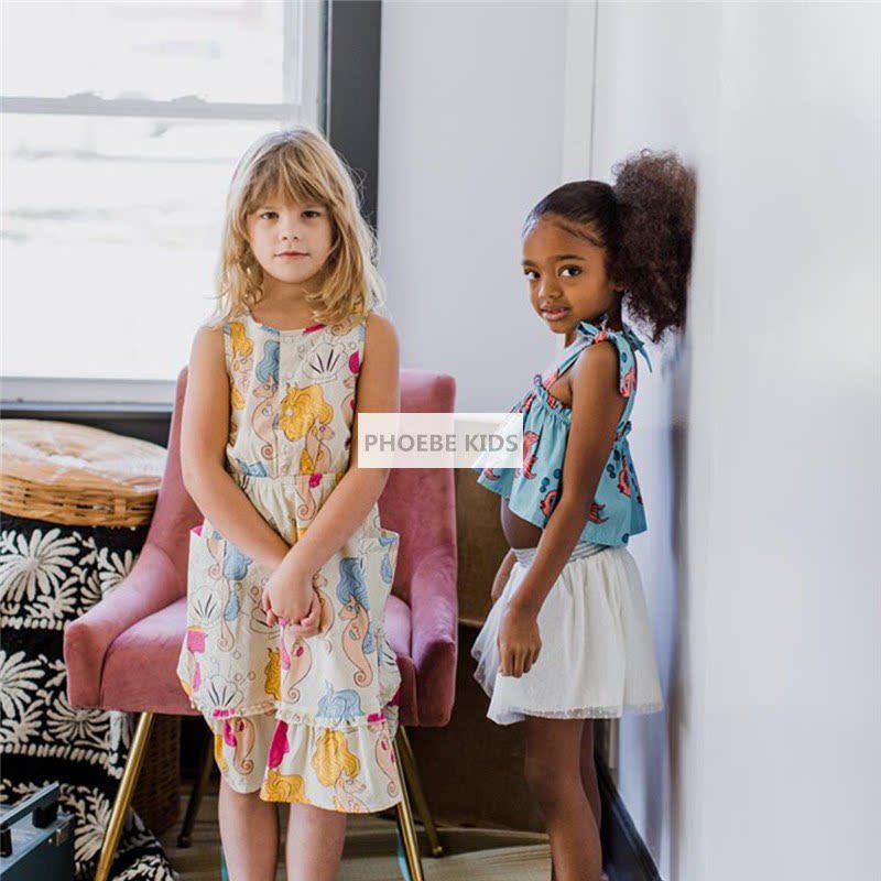 Sweden mini19SS spring and summer full print seahorse series girls short-sleeved shirt shorts suit baby dress