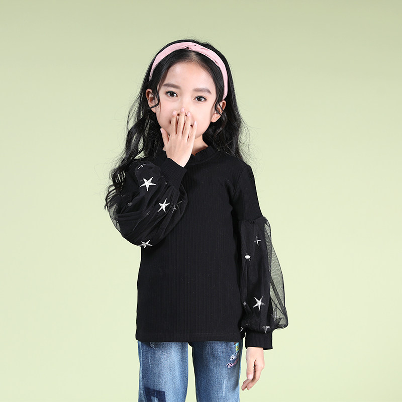 Girls' bottoming shirts, black children's autumn clothes, big girls' long-sleeved T-shirts, cotton autumn clothes, high-neck spring and autumn tops