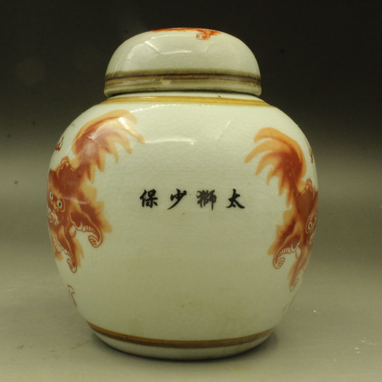 Qingqian Lung Pink Pink Lions Less Palate Tea Leaves Jar Storage Jar Ancient Play Antique Antique Porcelain Old Goods Collection
