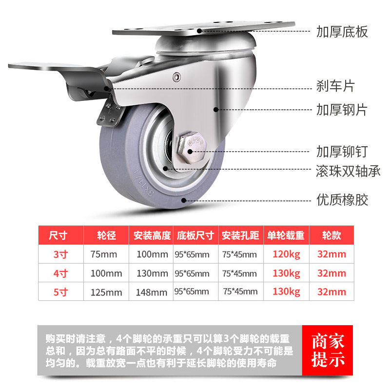 3 inch directional 3 inch universal with brake 4 inch directional 4 inch universal with brake 5 inch directional 5 inch universal direction 5 inch universal belt brake 3 inch single wheel 4 inch single wheel 5 inch single wheel 5 inch single wheel 3 inch (directional + universal) X2 3 3 inches (directional + brake) X2 4 inch (directional + universal) X2 4 inch (directional + universal) X2 4 inch (directional + brake) X2 4 inch (directional + brake) X2 5 inch (directional + universal) X2 5 inch (directional + universal) X2 5 inch (directional + brake) X2
