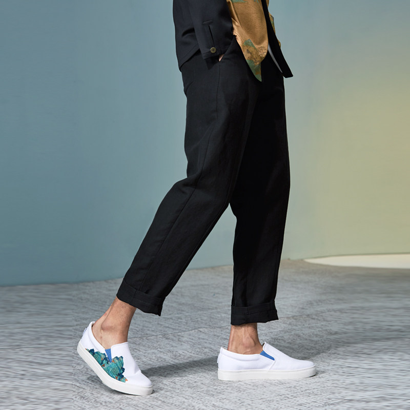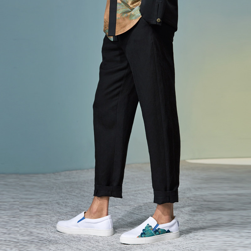 (Male's Ruins) Retreat Chinese Wind Body Waist Sub Cutting Line Design 90% Linen Casual Kharen Pants