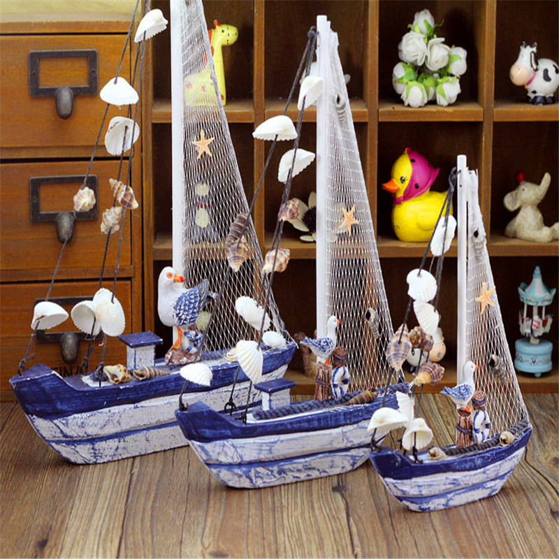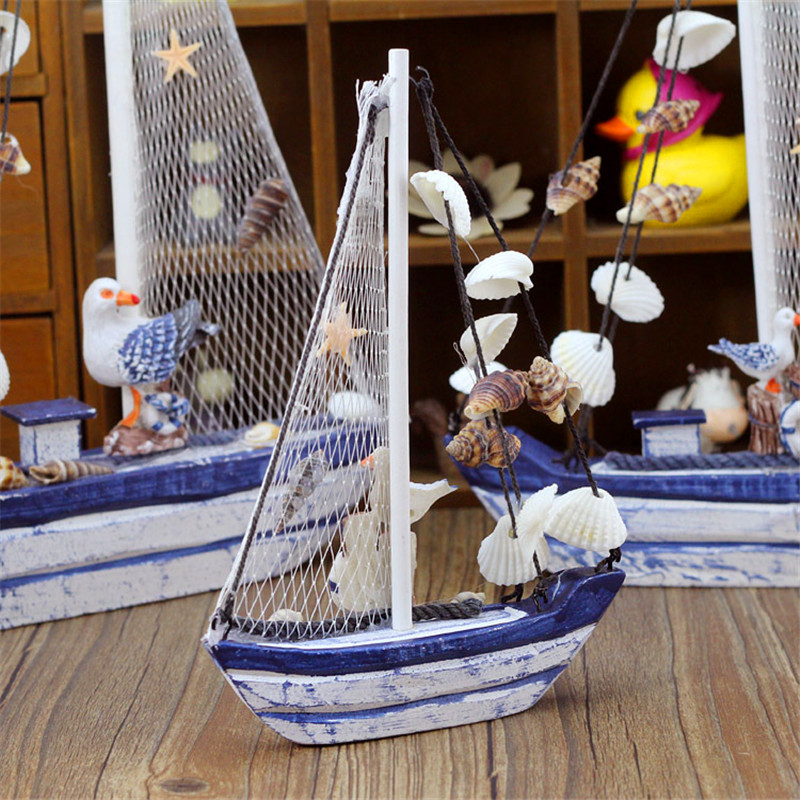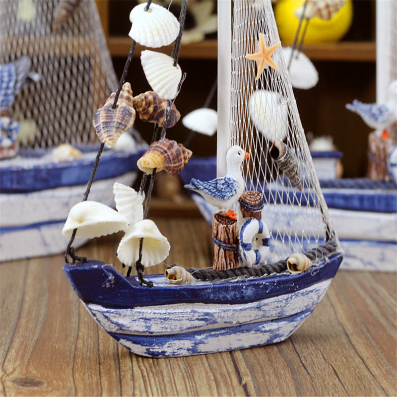 Shell Sailing Mediterranean Home Residence Ornaments Make Old Style Handicrafts Gift Furnishing Blue White Wood