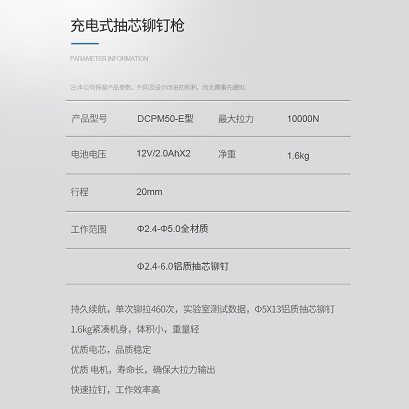 Dongcheng electric riveting gun DCPM40E 50E lithium electric riveting grab 12V rechargeable automatic core pulling riveting machine