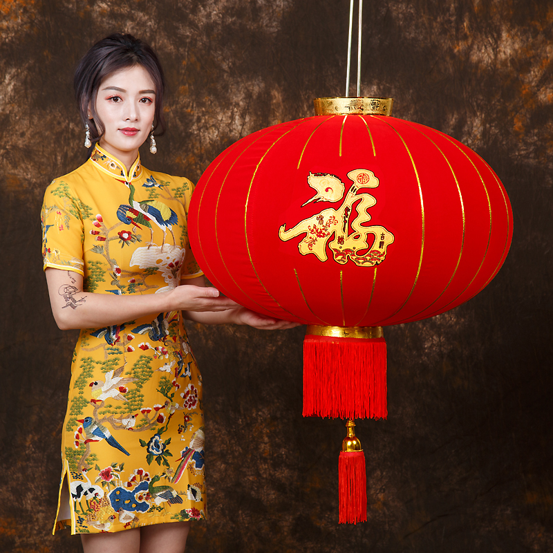Fuji Fleece Big Red Lantern Hanging New Year Spring Festival Festival Decoration Outdoor Balcony Door Lantern