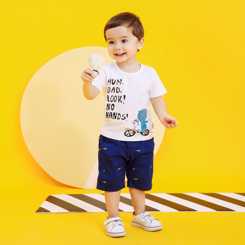 Zero Yu Kids Wear 2019 New Short Sleeves Han Cartoon Printing Summer Pure Cotton Boys Round T Shirt