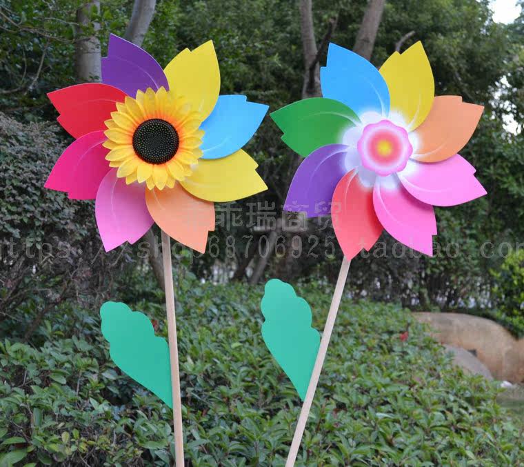 46cm wooden pole sunflower windmill 36cm big sunflower windmill Kindergarten real estate scenic spot decoration