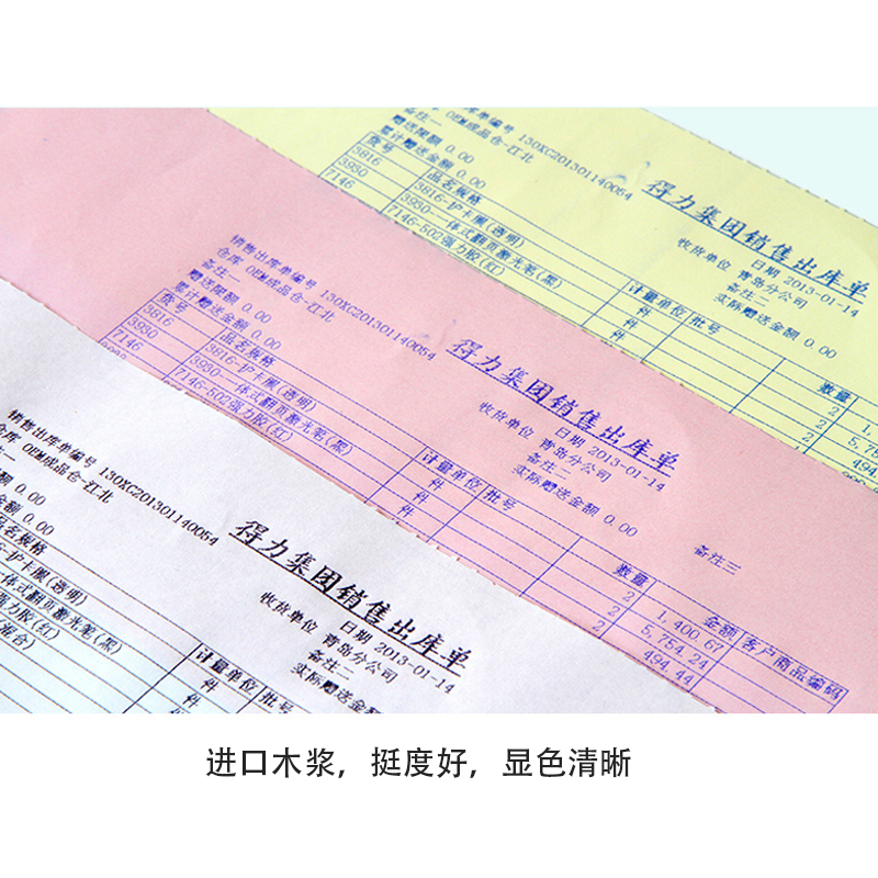 Deli needle copy paper Triple second division Two third division Four five One two Computer copy paper Color invoice voucher list bill Blank pinhole multi-union printer paper