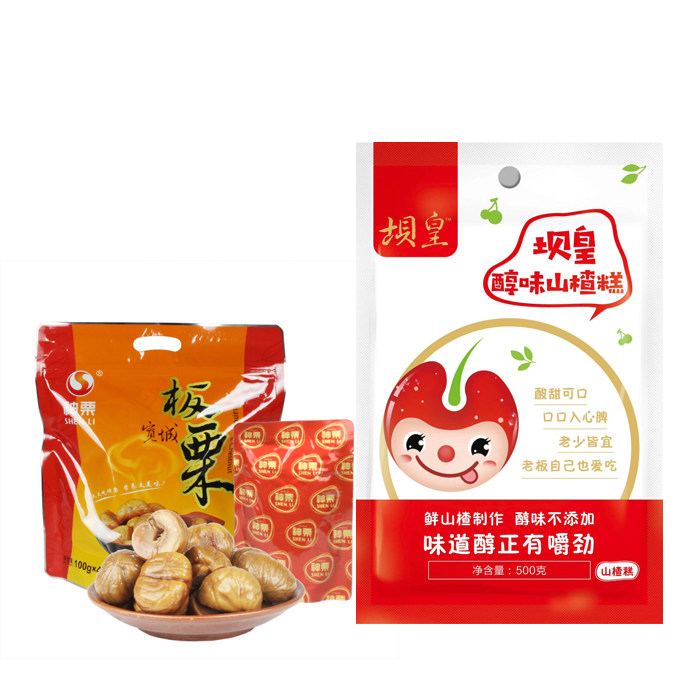 (Hawthorn slices 500g chestnut kernels 400g)Chengde specialty shell-free cooked chestnut hawthorn cake Dried hawthorn snacks