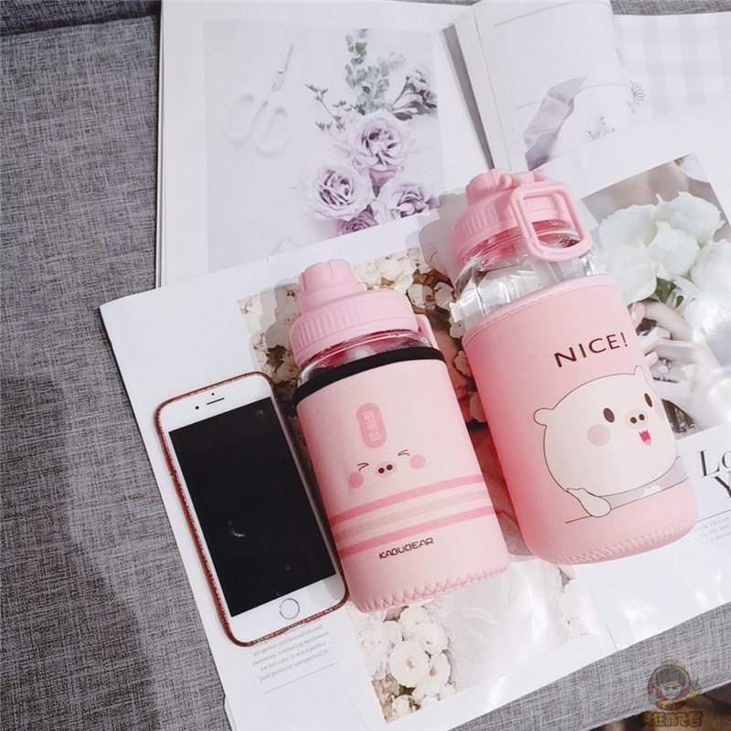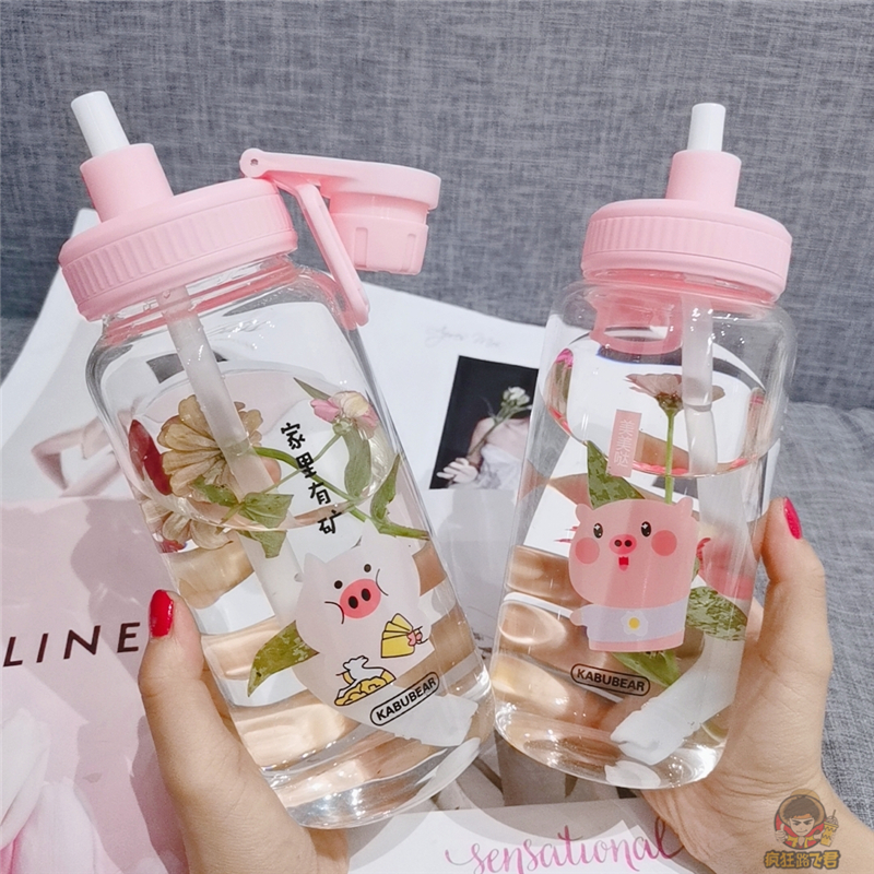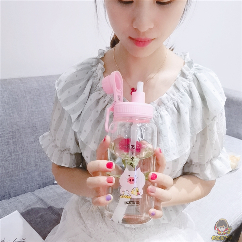 Cute glass shaking sound net red ins girl with straw cup Cartoon portable cup Student cute cup