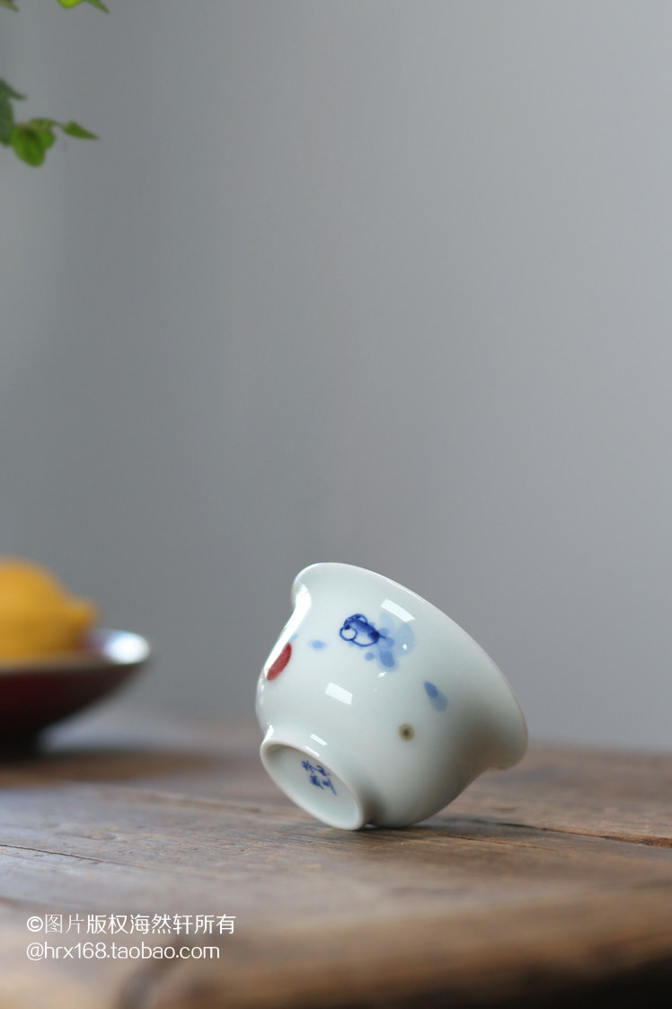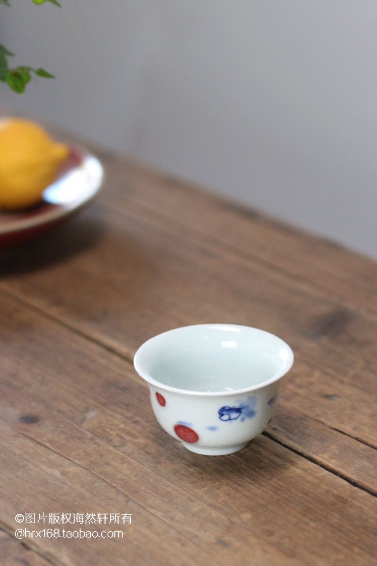 Glazed Red Gongfu Tea Cup Tea Set of tea Tea Tea Cup Handpainted Small Fish Gold Fish White Porcelain China Small Number Tea Bowl