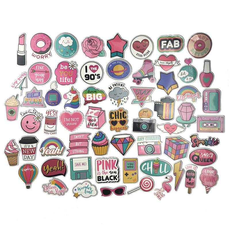 60 sheets of pink cute cartoon stickers Suitcase Sticker Skateboard Sticker suitcase Waterproof Sticker Computer Sticker