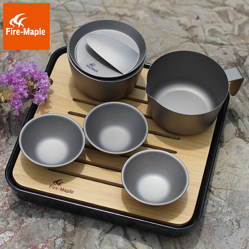 Fire maple portable small tea plate outdoor camping bamboo tea sea titanium tea set special black deer tea plate