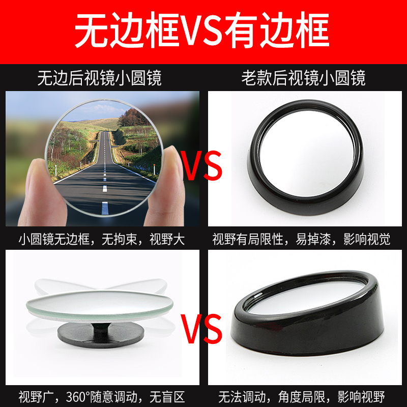 Car rearview mirror small round mirror HD adjustable blind spot mirror Reversing wide-angle blind spot auxiliary mirror 360 degree mirror