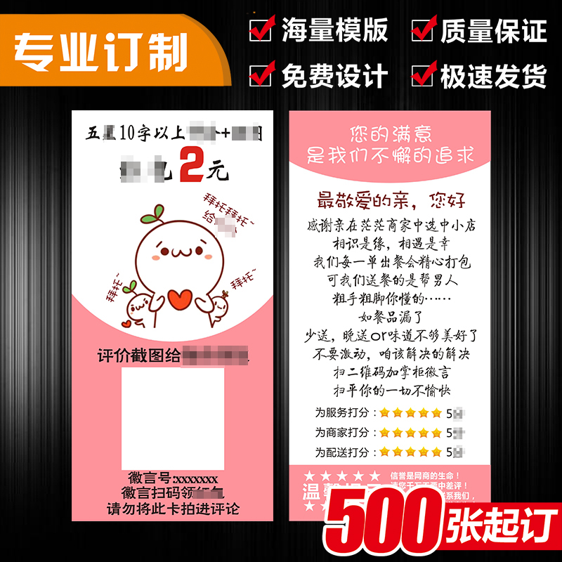 After-sales Service Card Customized Takeaway Card Creative Scrape Carle Catering Coupon Coupons Spot Online Store E-commerce Generic