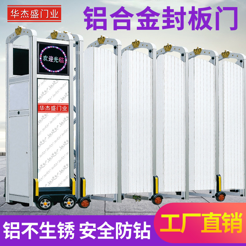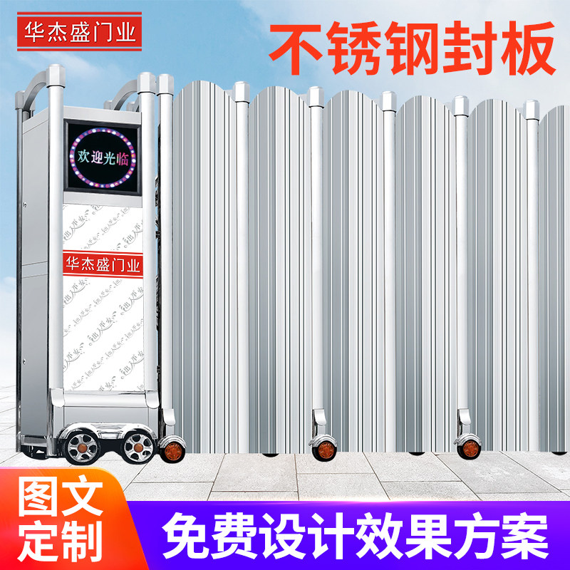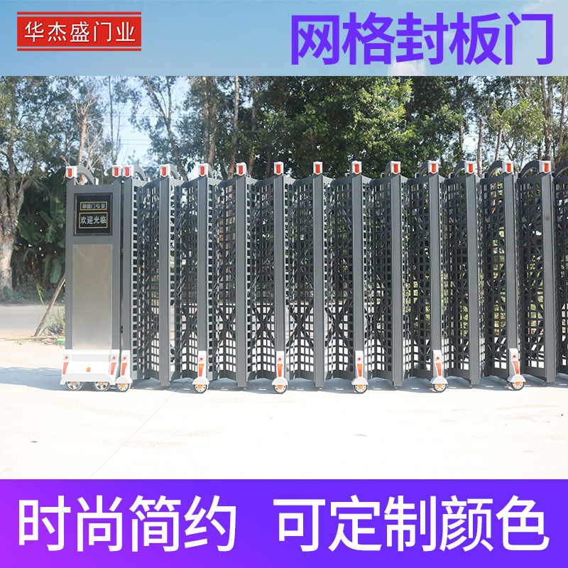 Stainless steel sealing plate electric telescopic door construction site factory safety wall shielding closed screen punching perforated telescopic gate