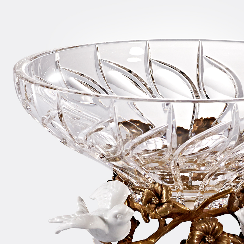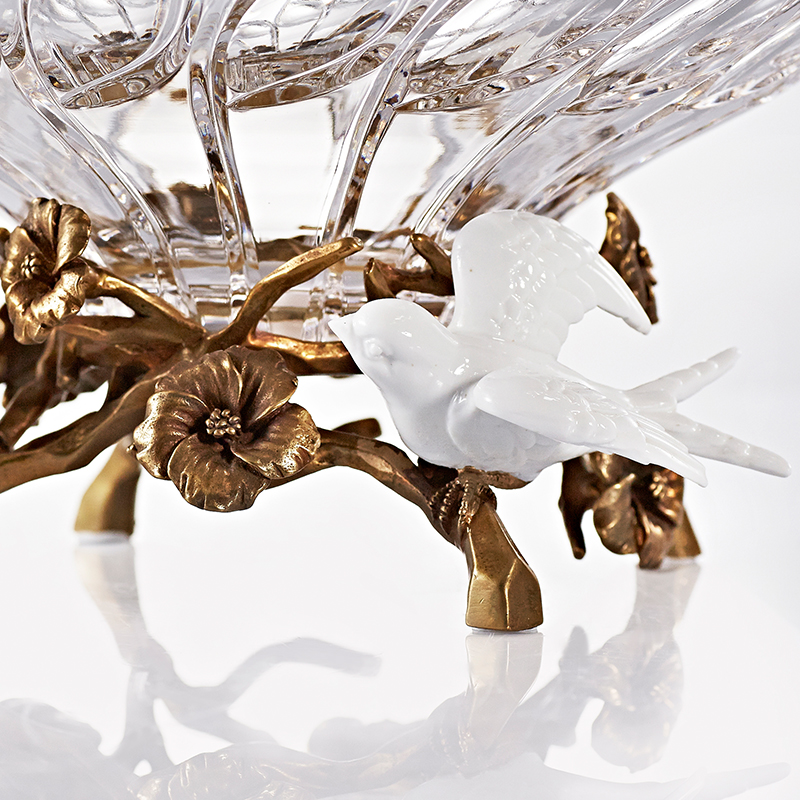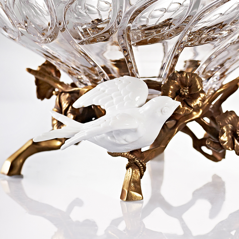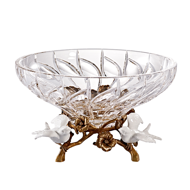 Phoenix Mercure European transparent crystal glass round exposure hand-carved white ceramic bird fruit dish decoration