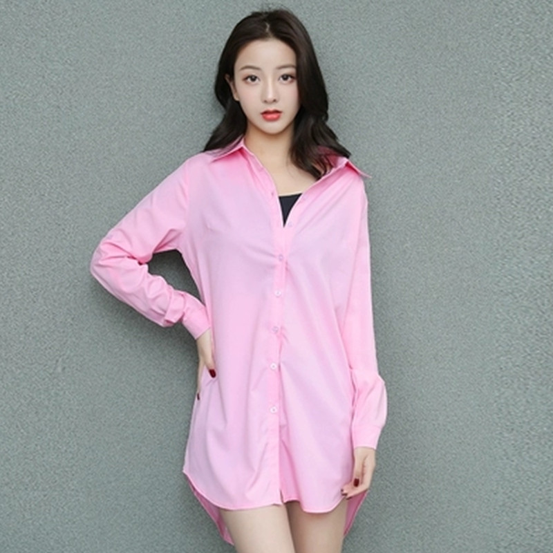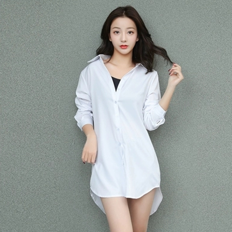 2022 Spring new medium long version large size white shirt woman long sleeve loose Korean version blouse spring clothes women's clothing