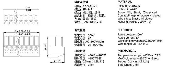 Green terminal block 3 5MM PLUG-in welded PCB terminal block 2EDG-3 5 male and female plug-in terminal